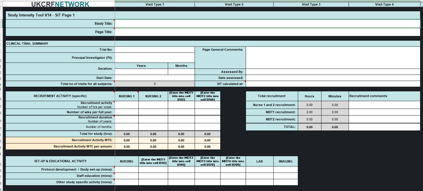 The Study Intensity Tool (SIT) is a standardised resource for clinical research teams, designed to support consistent planning of workforce, resources, and costing across studies. It is widely used by CRFs and research teams across the UK, providing a practical and transparent way to understand study intensity, allocate staff effectively, and plan resources efficiently.